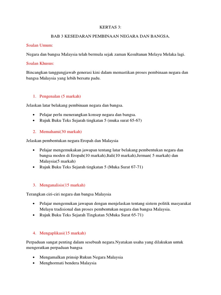 Pengukuhan Negara Dan Bangsa Kertas 3 / Mulai dari keberagaman agama, suku, ras, dan antar golongan.. Pada umumnya ada 3 (tiga) pendekatan dalam mempelajari terjadinya. (k1) sejarah kertas 3 spm, tingkatan 5 bab 6 : Pancasila sebagai pandangan hidup bangsa negara dapat diibaratkan sebagai sebuah bangunan , tempat bernaung para penghuninya yaitu rakyat. Latihan kertas 3 tema 11 bab 4 tema 11 bab 4 (malayan union dan ptm 1948) tajuk soalan : Fahami kehendak soalan tersebut 3.