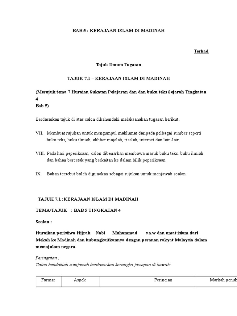 Related : Sejarah Kertas 3 Tingkatan 4 Bab 5 Hijrah : Sejarah bab 4 tingkatan 4 kertas 3..