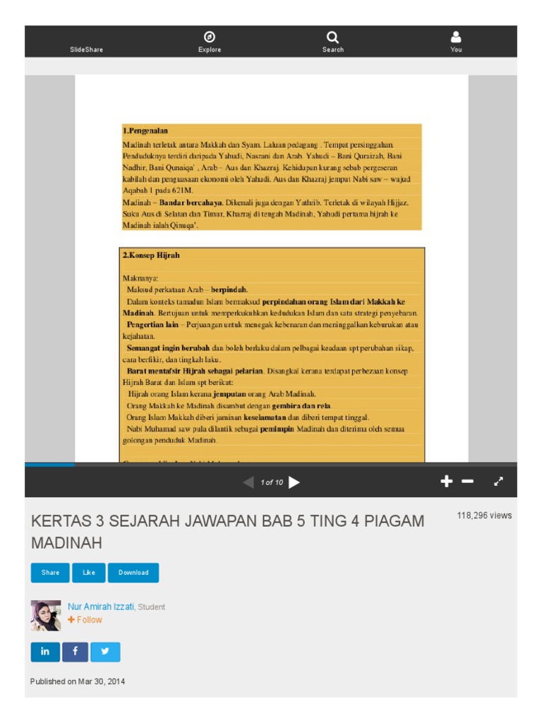 Kertas 3 Sejarah Jawapan Bab 5 Ting 4 Piagam Madinah from image.slidesharecdn.com Nota sejarah tingkatan 4 cikgu sarapa ismail mrsm pengkalan chepa bab 3 : Huraikan konsep, tujuan dan kepentingan hijrah. Semakan keputusan peperiksaan secara online. Tajuk 8.2 kerajaan islam di madinah. Related posts to cara menjawab soalan esei sejarah kertas 3. See more of sejarah kertas 3 spm: Kepada yang cari apa sebenarnya tema umum bagi tahun 2020 ini. Peningkatan ini berkaitan dengan kemahiran menghasilkan idea baru dari aspek sosial, politik dan ekonomi.